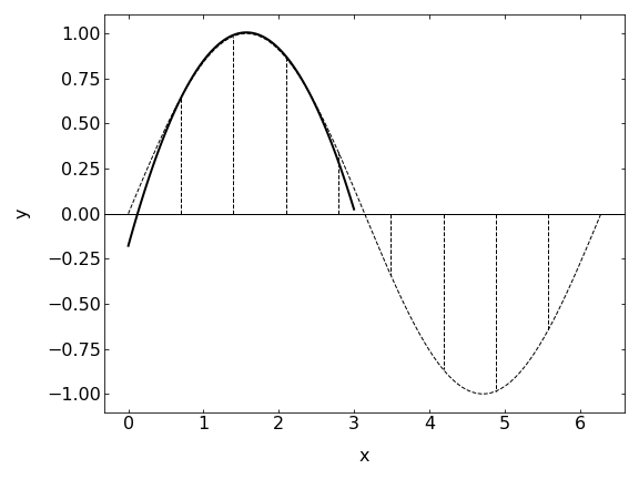 \[\begin{equation} \int_{a}^{b} f(x) dx \approx \frac{\Delta x}{3} \sum_{i=0}^{(N-1)/2} \left(f(x_{2i}) + 4f(x_{2i+1}) + f(x_{2i+2})\right) \end{equation}\]