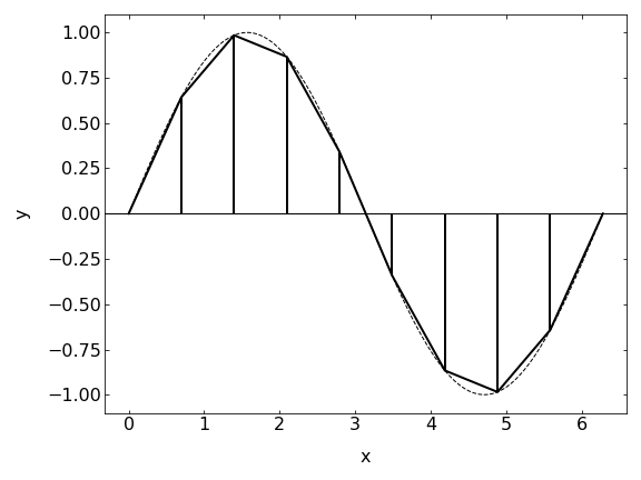 \[\begin{equation} \int_{a}^{b} f(x) dx \approx \sum_{i=1}^{N} f(x_{i}) \Delta x \end{equation}\]