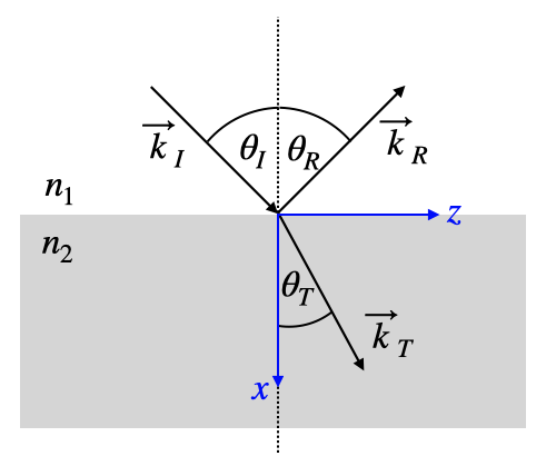 \] According to the condition that the tangential component of the wavevector is conserved we can write down