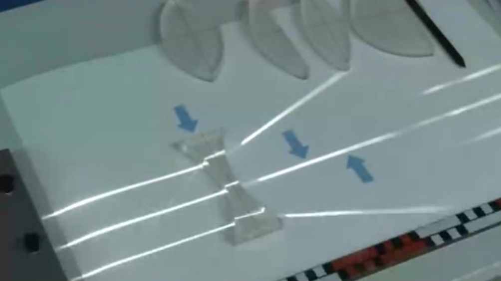 \[\begin{pmatrix} y_2 \\ \theta_2 \end{pmatrix} = \begin{pmatrix} 1 & 0 \\ -\frac{1}{f} & 1 \end{pmatrix} \begin{pmatrix} y_1 \\ \theta_1 \end{pmatrix}\]