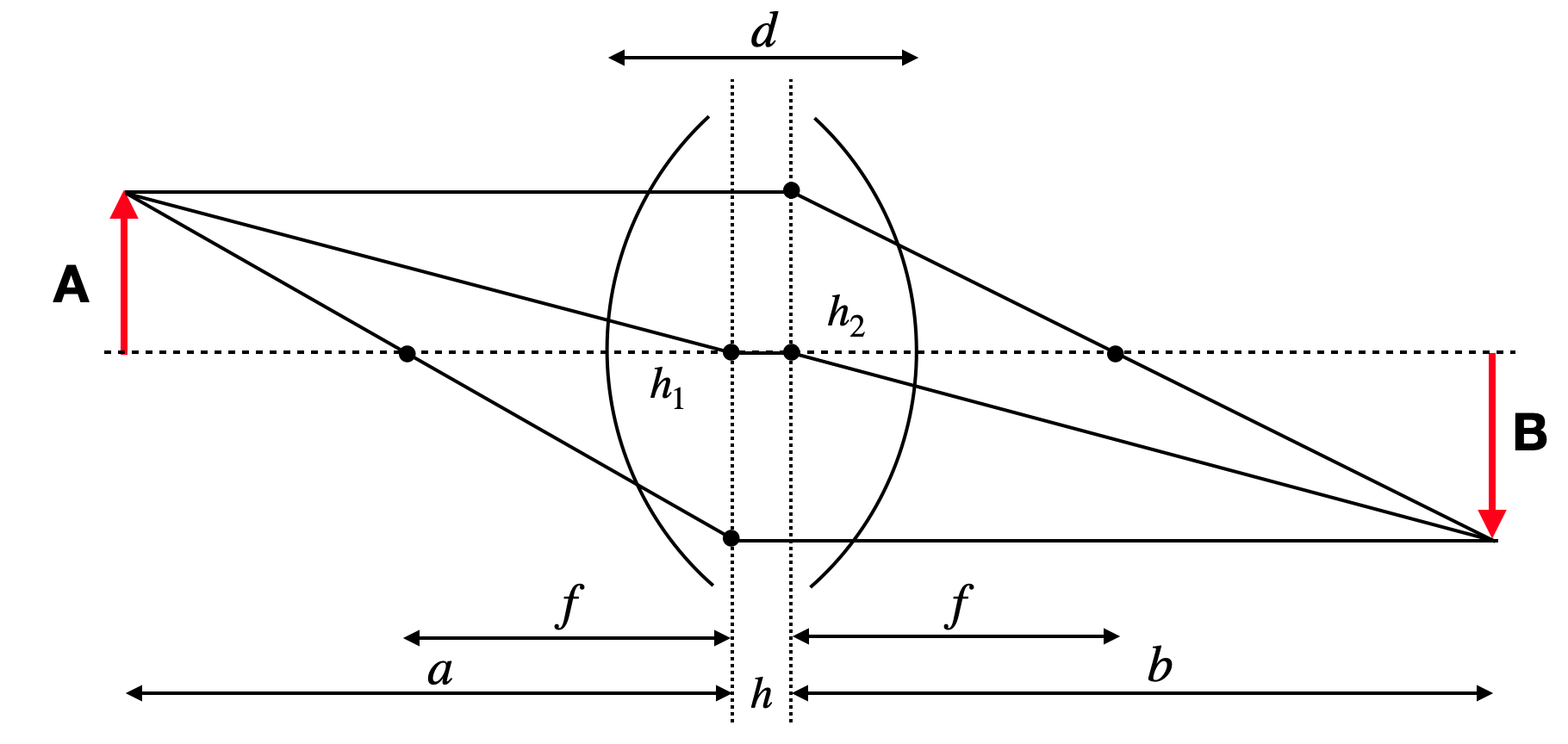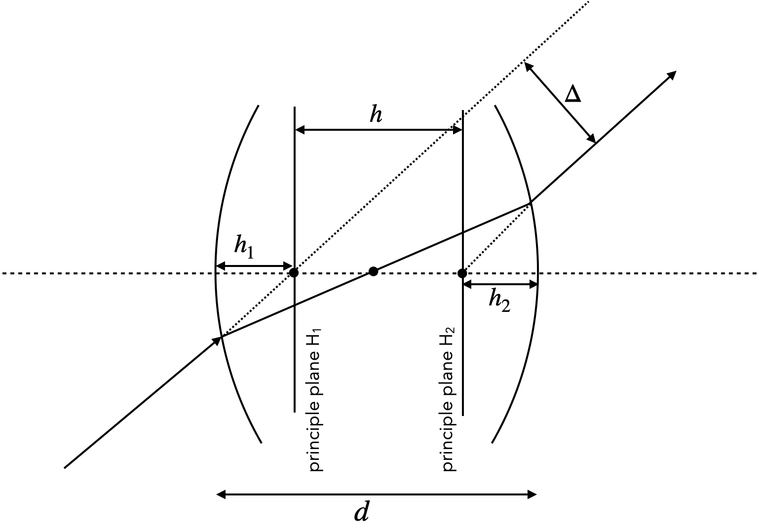 = \begin{bmatrix} 1 - \frac{d}{f_1} & d \\ -\frac{1}{f_2} - \frac{1}{f_1} + \frac{d}{f_1 f_2} & 1 - \frac{d}{f_2} \end{bmatrix}