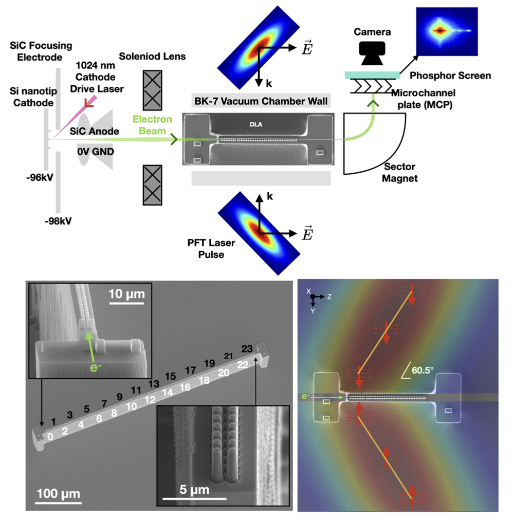 Modern accelerators can accelerators for charged particles can either be very large, such as the well known LHC at CERN, or very small an fit on a silicon chip as displayed in the image below.