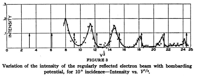 Their key experiment involved reflecting electrons from a nickel crystal. The results are shown in the following figures: