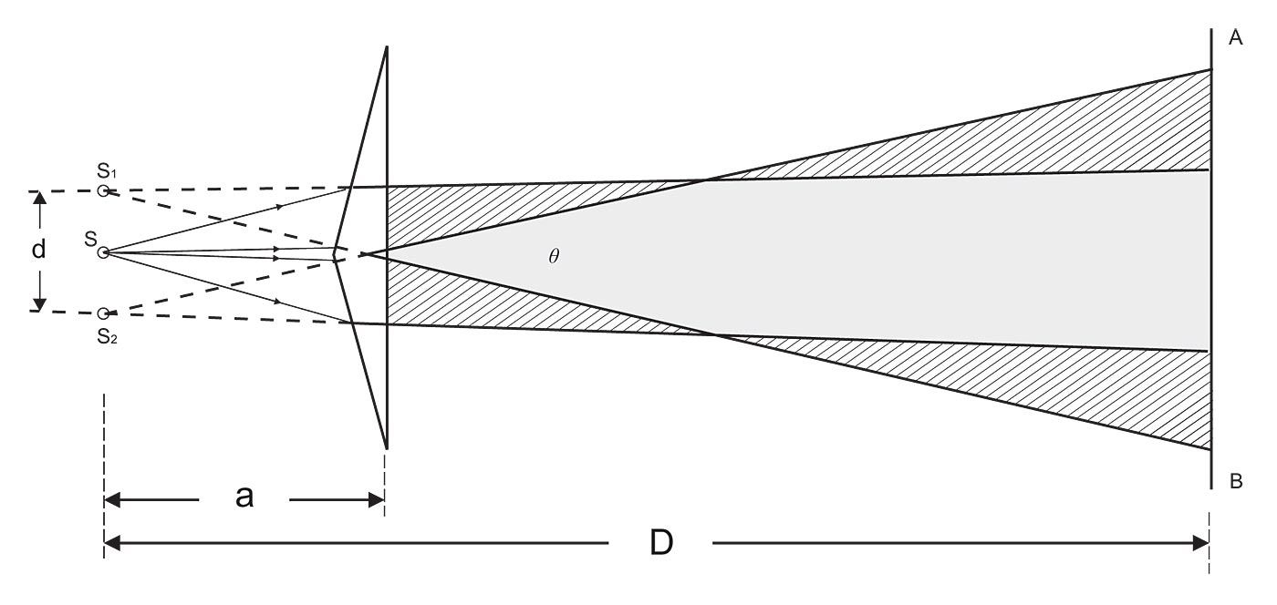 The Fresnel biprism offers another ingenious method for creating two coherent sources. This device consists of two thin prisms joined at their bases, with very small apex angles. When light from a single source passes through the biprism, it’s refracted in opposite directions by the two prism halves, creating two virtual sources behind the biprism. These virtual sources are mutually coherent and produce the characteristic double-slit interference pattern.
