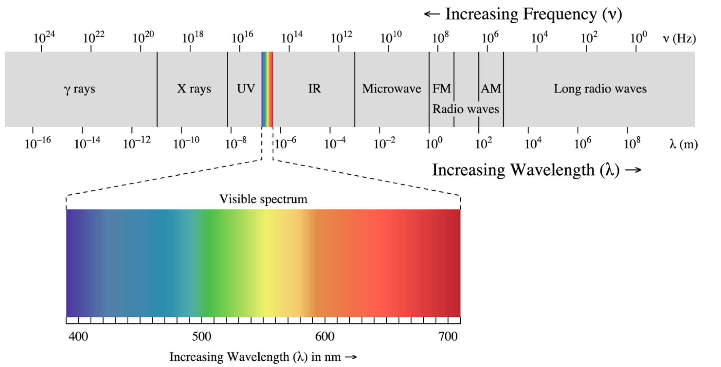 Light is part of the electromagnetic spectrum, which spans an enormous range of frequencies. The visible region, extending approximately from 400 nm (violet) to 700 nm (red), represents only a small fraction of this spectrum. This wave description is essential for understanding many optical phenomena that geometric optics cannot explain, particularly when dealing with structures comparable in size to the wavelength of light.